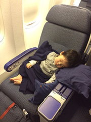 帰りのフライトも夜便で、またずっと抱っこで立ちっぱなしかと諦めていたら、今度は6時間ぐらい座席で寝てくれた!ラッキーなことに座席が広いプレミアムエコノミーにアップグレードされて、すぎ丸は快適そうにくつろいでいた。私は緊張のせいかほとんど眠れなかったけど。