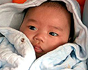 親が規則正しい生活をしていないせいか、ユキも夜寝るのが遅くなった。続けて9時間は寝るが、寝るまでがグズグズ言って寝付きが悪い。やっとゆっくり寝られるようになった。寝る前に2時間くらい抱っこというのはつらいけれど。チッチは、このころまだ9時間ももたなかったけれど、ユキは大きいせいか、飲みだめができるようになるのが早いようだ。本当に大きい。太って肩の上にいきなり頭が乗っているようだ(つまり首がない)。首がないのに、昨日母がお年玉代わりにとユキにハイネックの洋服をくれた。詰め襟風で着せると太った不良風だ。