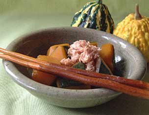 わたし、かぼちゃ好きなんです(笑)。「いも・たこ・なんきん」なんていうもんね。簡単に作れてちょっと現代風の煮物。かぼちゃは、火が通りやすいから短時間でできるのがうれしい。